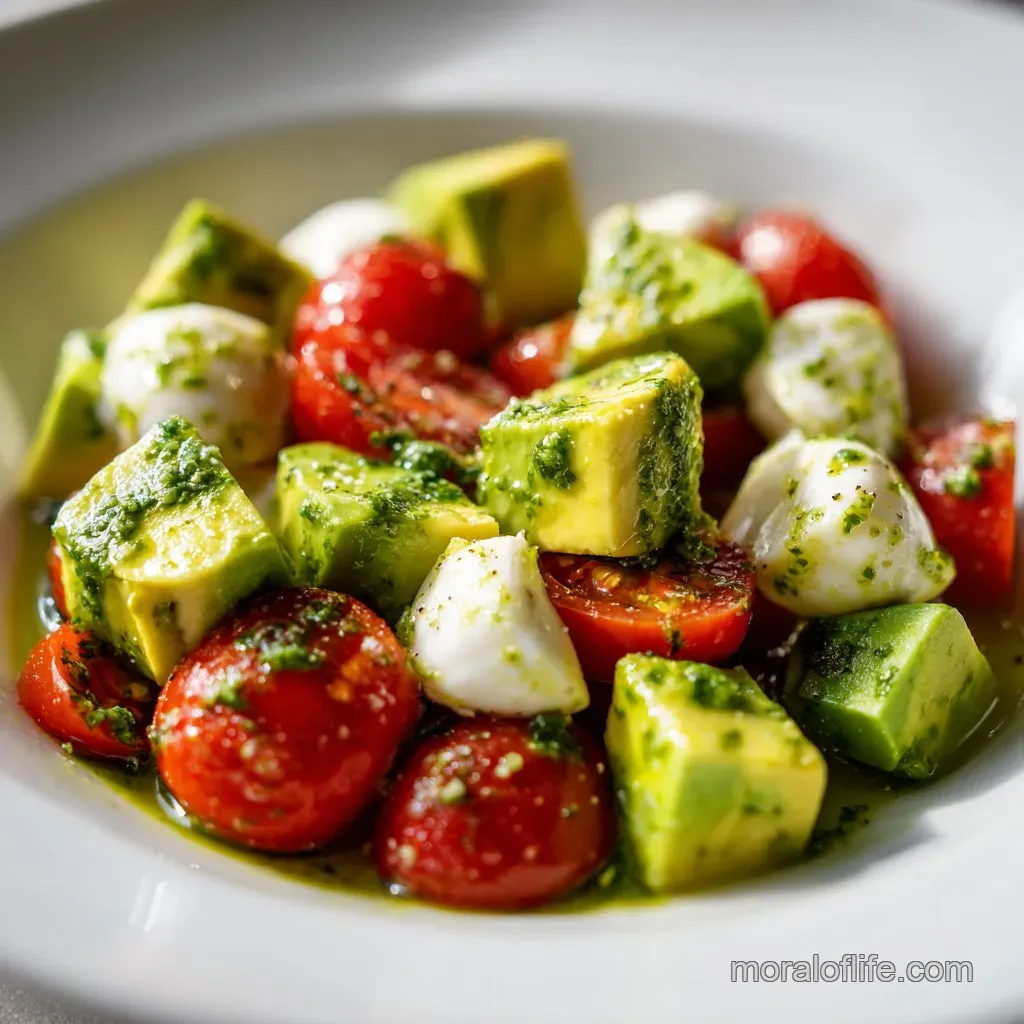 Flavor Binding: Pesto acts as the "glue." Because it's an emulsion of oil, nuts, and cheese, it clings to the smooth surfaces of the mozzarella and avocado much better than a thin vinaigrette would.