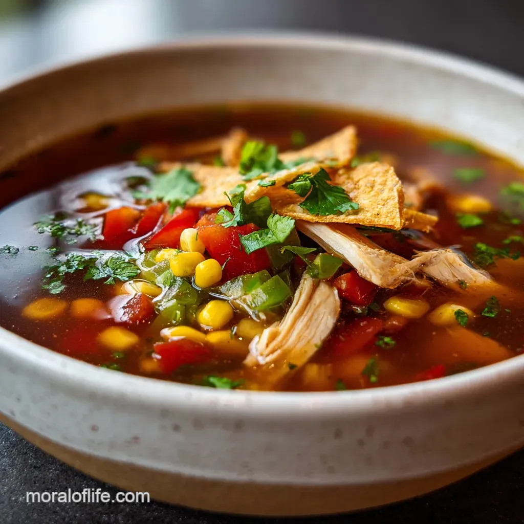 Finally, the 20 minute simmer allows the chicken to reach that perfect 165°F internal temperature while the tortillas dissolve. This flow is meant to be relaxed you can even fry your tortilla strips while the soup does its own thing on the stove.