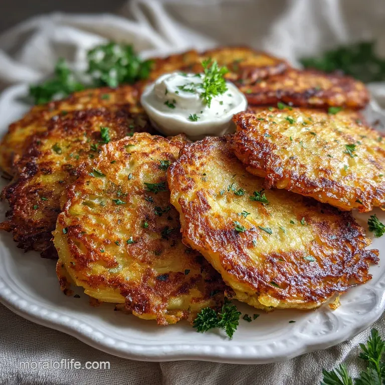 The moment the first scoop of batter hits the hot oil, the kitchen transforms. There is a specific, high pitched sizzle that tells you the edges are already turning into lace. I remember standing in my grandmother's kitchen, watching her wrist flick with a heavy box grater, the air thick with the sharp, sweet aroma of grated onions and the earthy scent of Russets.
