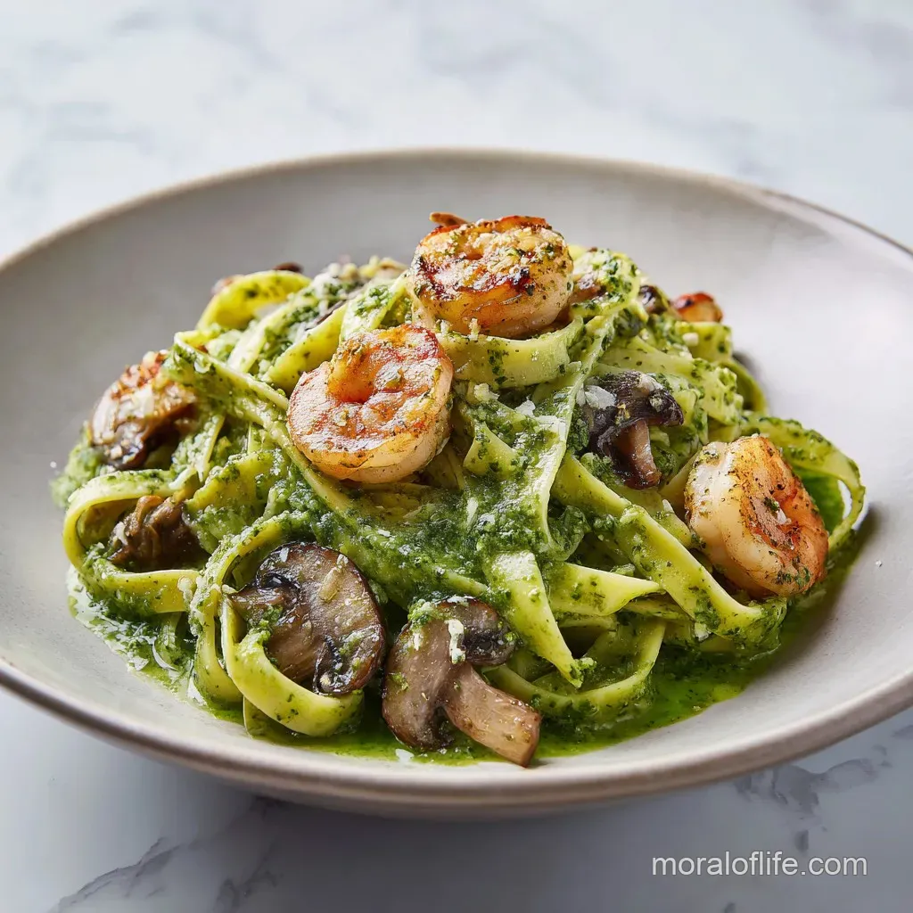 Pesto Shrimp Mushroom Pasta: Pan-Seared and Zesty