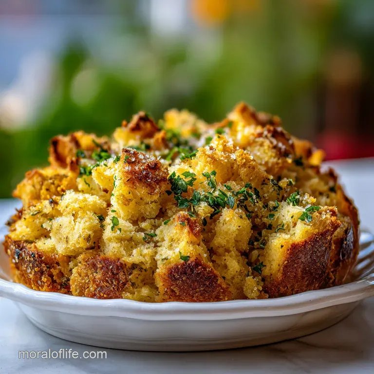 ✓ Don't skip the eggs; they are the glue that gives the dish its custardy lift. ✓ Avoid over mixing once the liquid is added, or the bread will break down. ✓ Let the stuffing rest for 10 minutes after baking to set the structure.