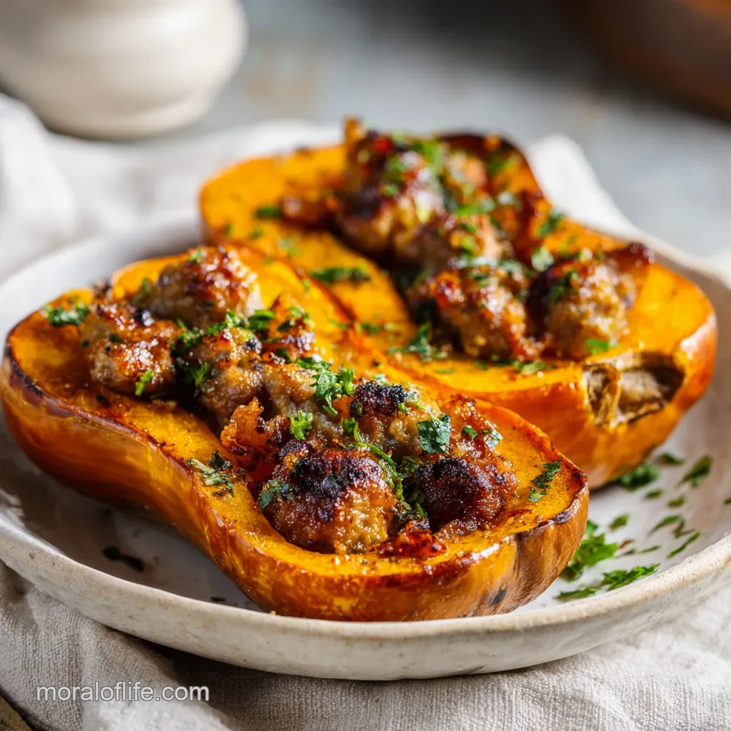 Sausage Stuffed Butternut Squash: Roasted and Hearty